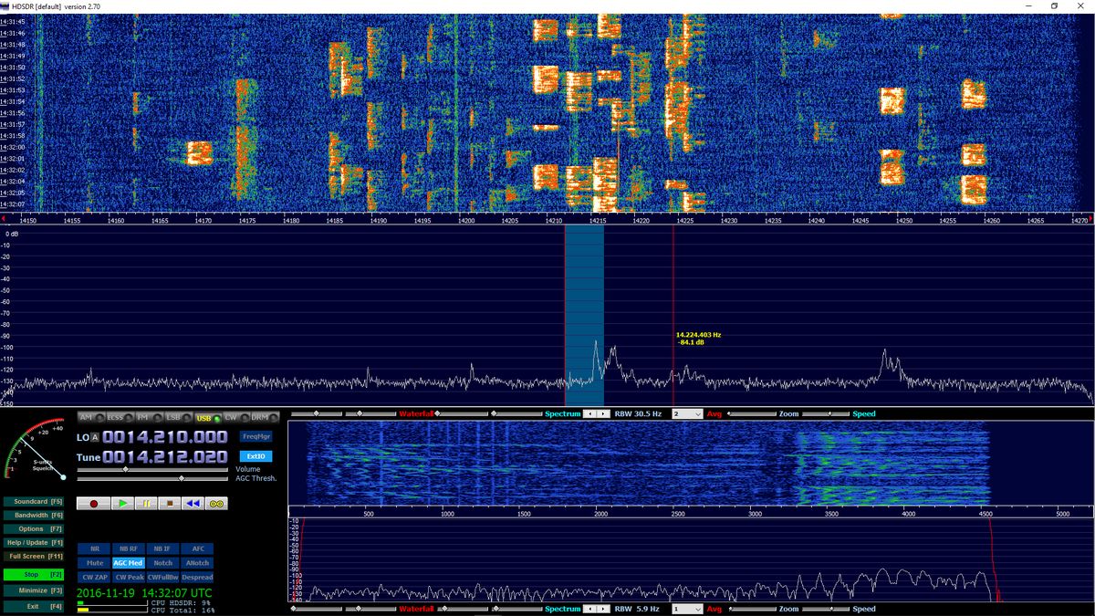 RTLdongle/USB stick tuned from 28 to 30 MHz and the USB connection from a computer to receive 28 to 30 MHz